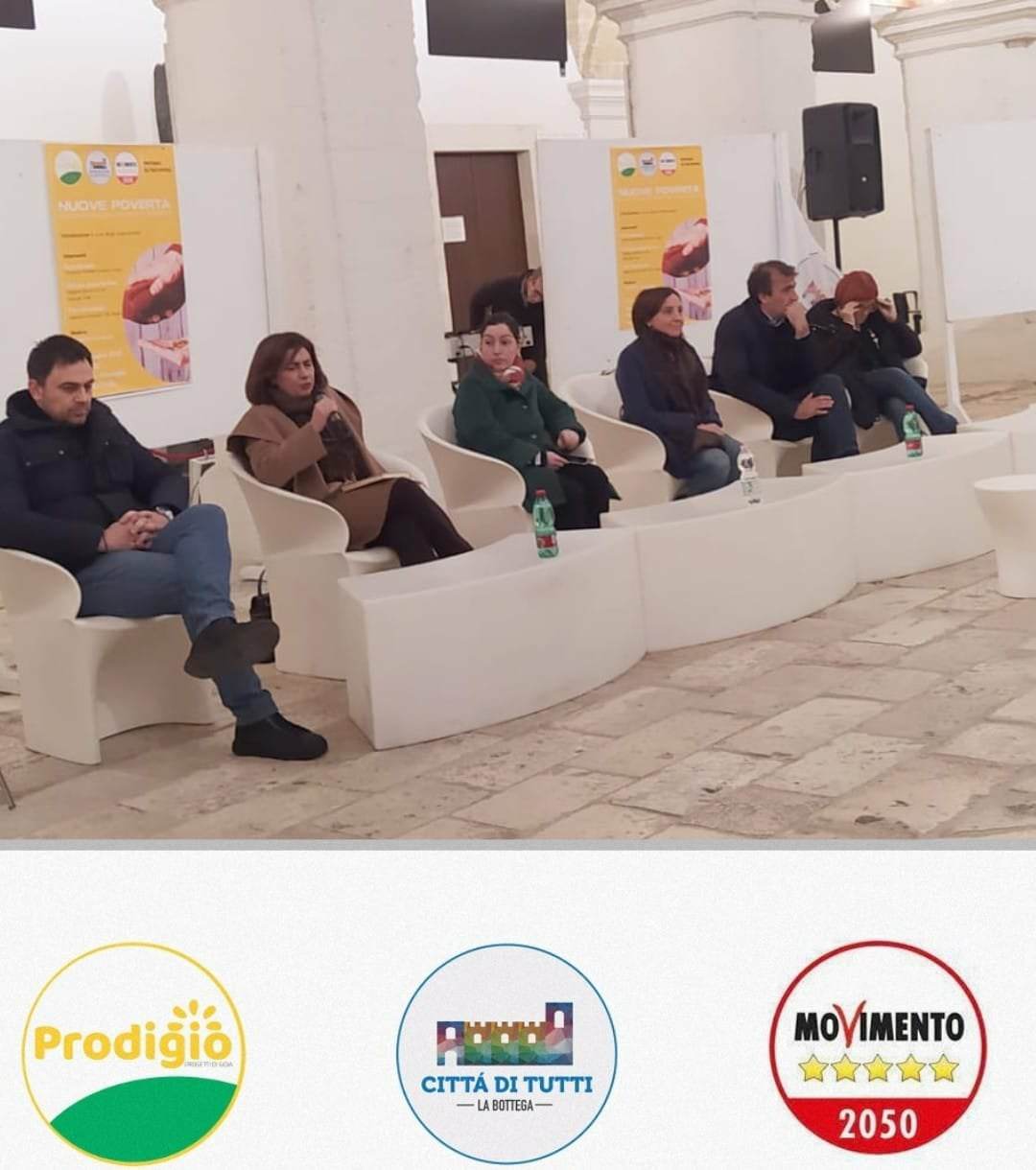 Gioia del Colle: Movimento Pro.Di.Gio., Città Di Tutti La Bottega, Movimento 5 Stelle, in una nota affermano «“Le nuove povertà”, questo è il complesso e, a nostro avviso, prioritario tema che abbiamo voluto trattare nell’incontro pubblico che si è tenuto giovedì 24 novembre 2022, presso il Chiostro Comunale.