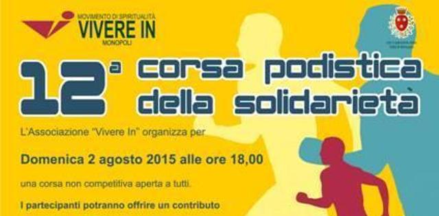 Domenica 2 agosto alle ore 18.00, presso il Cenacolo “Vivere In” di Monopoli, è in programma la 12^ corsa podistica della solidarietà.