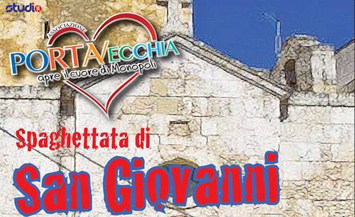 Questa sera a Monopoli è in programma l’ormai tradizionale “Spaghettata di San Giovanni”, promossa dagli Amici della Portavecchia. L’appuntamento è per le ore 20.00 in Largo San Giovanni, con poesie in vernacolo del prof. Luigi Reho, recitate dal monopolitano Gigi Rizzo. Seguirà la degustazione e la musica dal vivo. La Sagra è un’ottima occasione anche per visitare la chiesetta di San Giovanni inserita lungo la via Francigena, percorso fisico-ideale di origine medievale che conduceva i pellegrini alla Terrasanta e agli altri luoghi di culto della Cristianità. Fu costruita nel XIV secolo dall’Ordine dei Cavalieri Gerosolomitani che, in quel periodo erano presenti a Monopoli con una Commenda. L’attuale chiesetta, ricostruita nel 1707 dal Commendatore dell’Ordine Fra Domenico Recco, era annessa all’Ospedale, fondato dal patrizio napoletano Erberto Mirelli e dismesso alla fine del XVI secolo. La struttura, ancora oggi esistente, riporta la lapide dedicatoria sull’ingresso e alcuni simboli dell’ordine. La chiesa di San Giovanni presenta una facciata molto semplice, sovrastata da una croce in pietra e un ovale dipinto, poco leggibile, nel quale era raffigurata la croce, simbolo dell’ordine religioso. All’interno sono visibili solo i resti dell’altare.