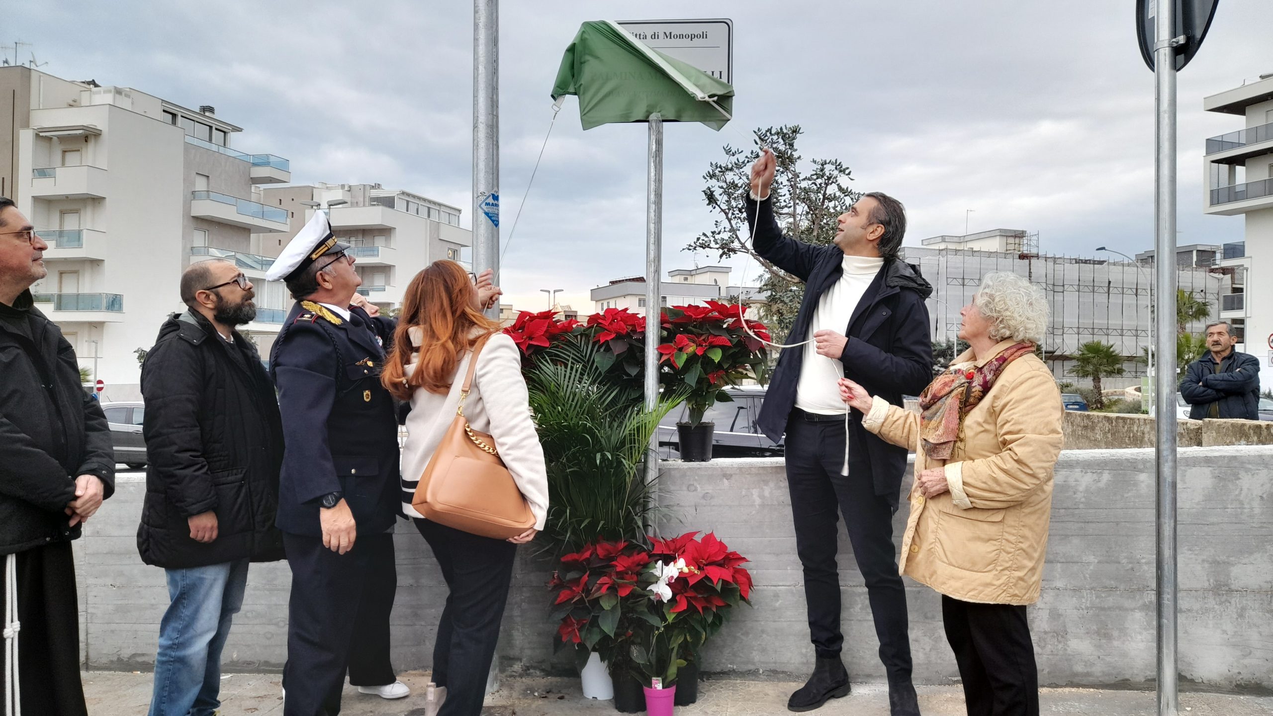 Alla cerimonia, alla presenza dei parenti della giovane vittima, sono intervenuti il Sindaco di Monopoli Angelo Annese, l’Assessore ai Servizi Sociali Miriam Gentile, i rappresentanti delle tre associazioni che hanno promosso la raccolta di firme (Paolo Morga per L’Allegra Brigata”, Barbara Grilli e Giovanni Gentile per l’Associazione Culturale Collettivo Teatro Prisma e Rita Sarinelli l’Associazione Progetto Donna Odv).
