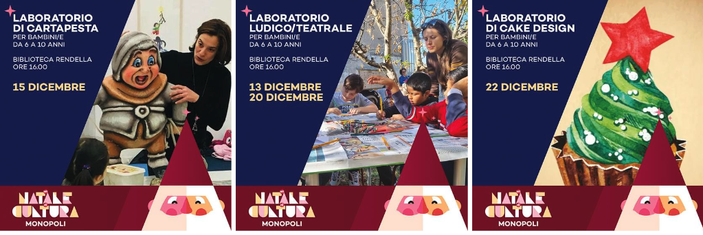 Appuntamenti per i più piccoli nell’ambito di Un Natale di cultura, la rassegna organizzata dall’Assessorato alla Cultura del Comune di Monopoli (Assessora Rosanna Perricci) e curata dall’Associazione Ubuntu – Non solo teatro aps.