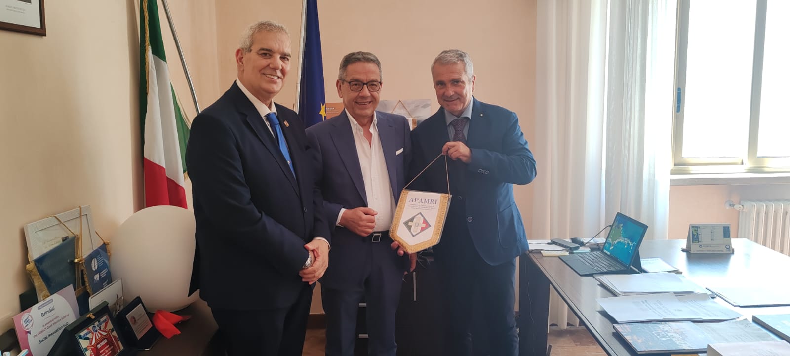 Un incontro istituzionale all’insegna dell’eccellenza civica, della promozione del merito e della responsabilità collettiva si è svolto nei giorni scorsi presso Palazzo di Città a Brindisi tra il sindaco Giuseppe Marchionna e una delegazione di APAMRI – Associazione Parlamentare di Amicizia con gli insigniti al Merito della Repubblica Italiana, guidata dal Presidente Nazionale Cavaliere Ufficiale Riccardo Di Matteo. Con lui il Delegato Provinciale per Brindisi, Cavaliere Antonio Giaimis.