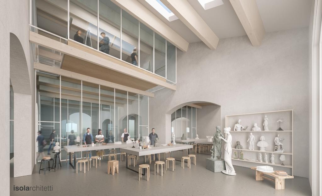 Il progetto, come noto, ruota intorno alla futura riqualificazione dell’originale “piazza d’Armi”, che diventerà una “piazza d’Arti”, un giardino che collegherà il nuovo parco con l’area a sud del quartiere diventando un’estensione all’aperto dell’Accademia, realizzata con le sembianze di un’arena, utile per installazioni artistiche, spettacoli e manifestazioni pubbliche.