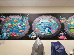 I murales sono stati realizzati nei quattro ambulatori di Oculistica aperti recentemente. Bambine e