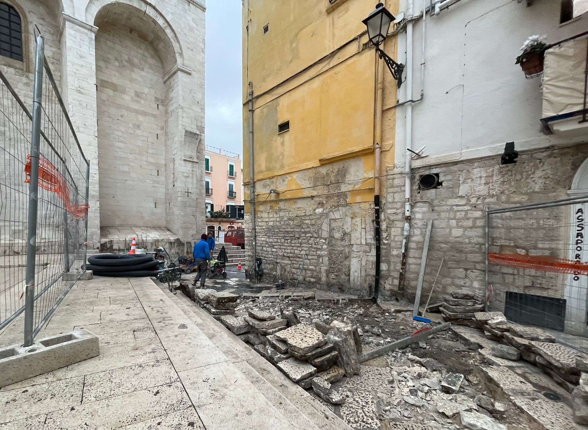 Sono cominciati martedì mattina i lavori di recupero delle basole nella piazzetta Bisanzio e Rainaldo, a Bari vecchia, situata lungo l’itinerario caratteristico, percorso dai turisti e fedeli, che collega la cattedrale di San Sabino con la Basilica di San Nicola.