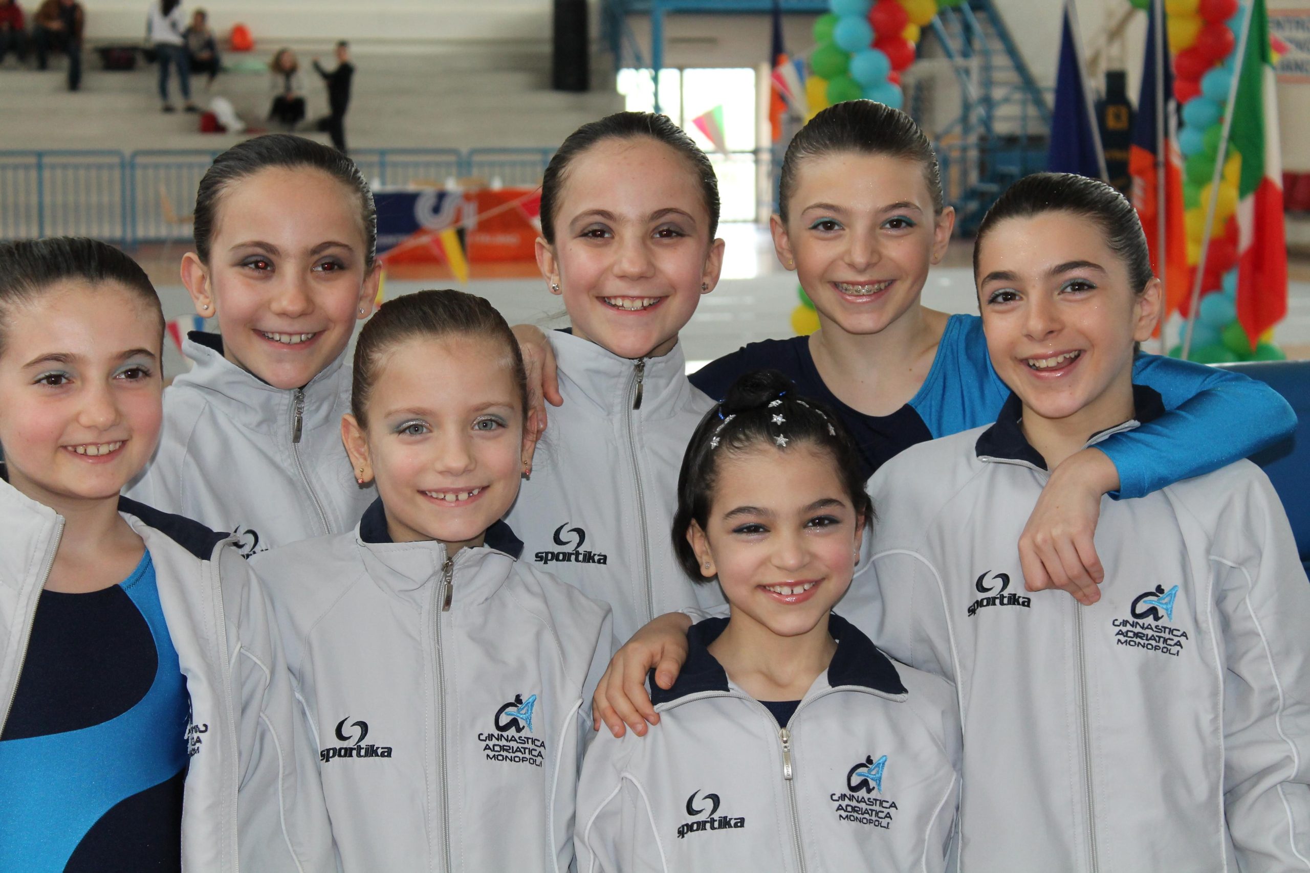 Brillante affermazione della palestra Adriatica alla festa regionale CSI di ginnastica ritmica svolta domenica 19 aprile 2015 presso il Palasport di Galatina. Circa 60 le atlete partecipanti in gara provenienti da ogni parte della regione. La palestra Adriatica era presente con sei ginnaste: Pepe Eliana, Pepe Emanuela, Muolo Melissa, Cavallo Chiara Cavallo Francesca, Lapadula Lorena e Calderaro Francesca allenate da Antonella Centomani con l’obiettivo di curare bene l’esecuzione e la tenuta del corpo. Al corpo libero si è classificata al 1° posto Pepe Eliana al 3° posto Calderaro Federica e al 7° Muolo Melissa sempre al corpo libero. L’esecuzione con la palla è stata vinta da Cavallo Chiara 2° posto da Cavallo Francesca. Nella categoria Allieve Pepe Emanuela sempre con la palla si è classificata al 1° posto. Positivo il commento dell’allenatrice Antonella Centomani che oltre a raggiungere l’obiettivo prefissato è riuscita a conquistare le prime posizioni.