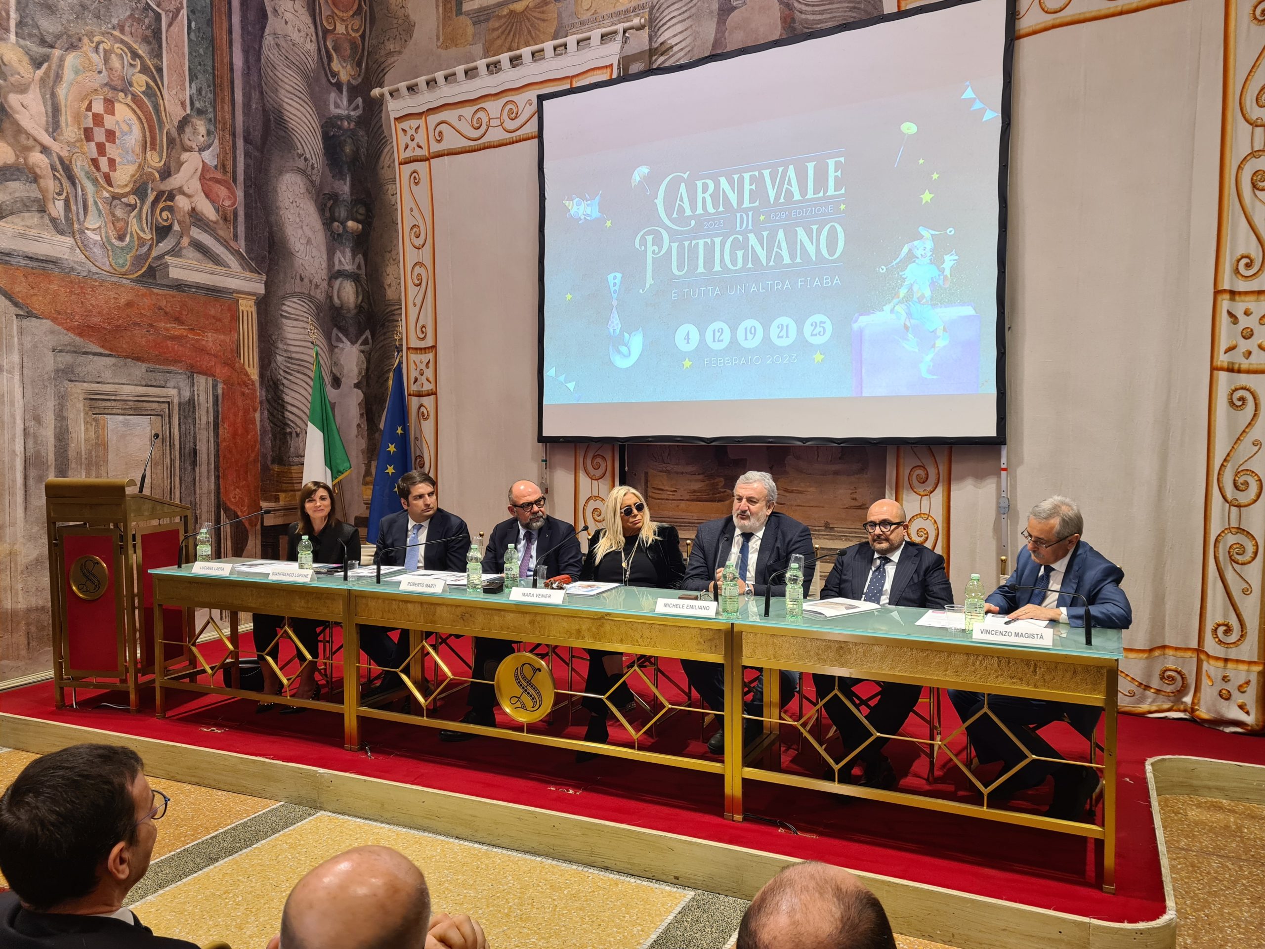 Il Presidente della Fondazione Carnevale, Giuseppe Vinella – “Abbiamo legato la storicità di un carnevale che conta quest’anno 629 anni alla presentazione in una sede storica come la Sala Zuccari di Palazzo Giustiniani. Un segno di congiunzione fra la storia d’Italia e la storia della nostra bella Puglia come il Carnevale di Putignano che quest’anno ritornerà con un programma ricchissimo per riportarlo alla ribalta nazionale così come merita”.