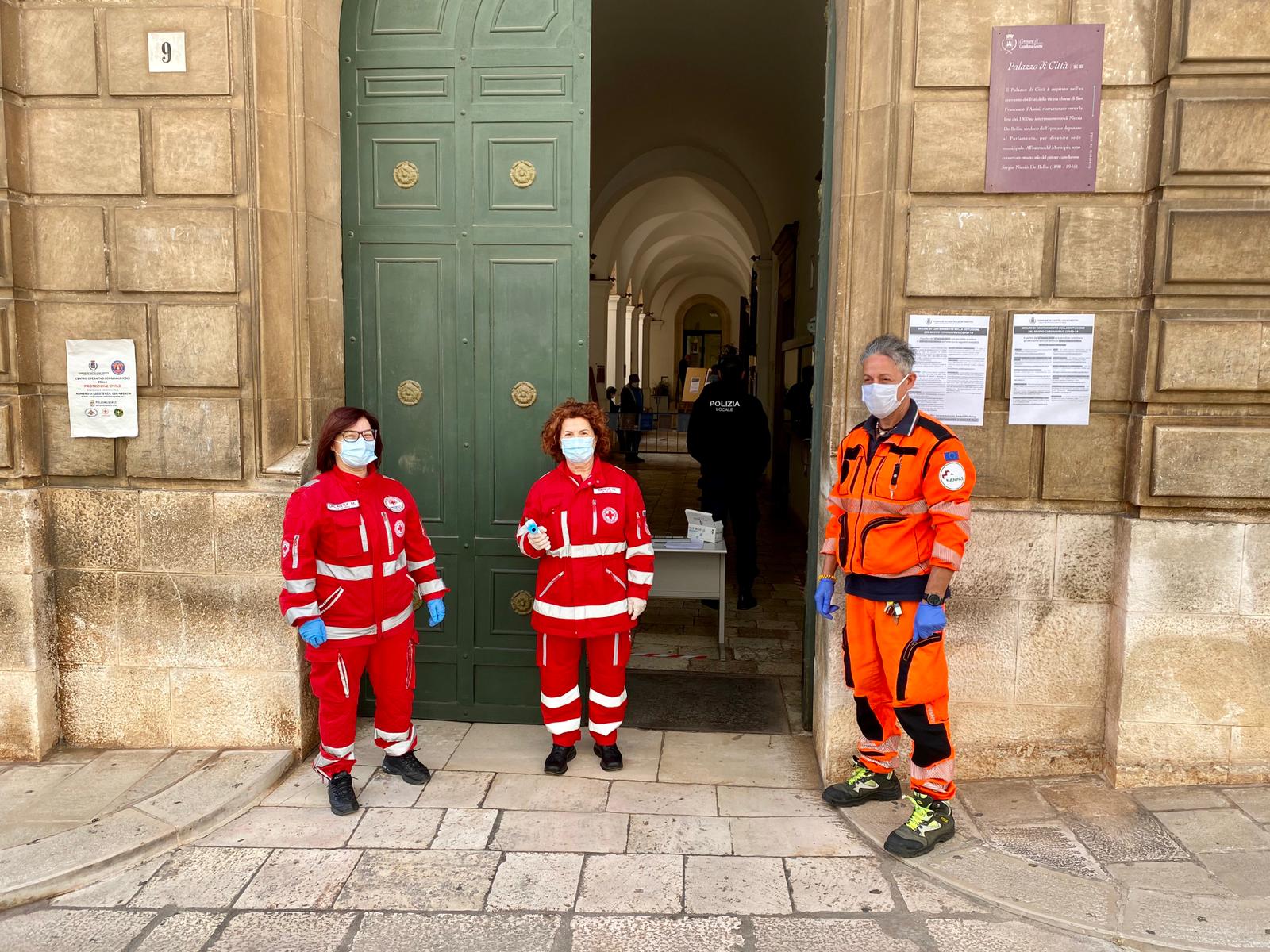 Al fine di rispettare le disposizioni in materia di contenimento del contagio da Covid-19, all’ingresso del Palazzo Municipale di Castellana Grotte si sta provvedendo alla misurazione della temperatura corporea di dipendenti, fornitori ed utenti tramite un termometro senza contatto. A misurare la temperatura alla porta d’ingresso le associazioni di volontariato afferenti al COC della Protezione Civile: la Pubblica Assistenza AVPA e la Croce Rossa Italiana – Comitato della Bassa Murgia.