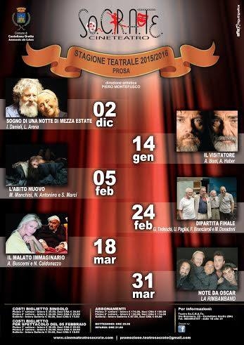 Nell’ottica di una programmazione artistica dal valore aggiunto, di anno in anno, sempre più interessante, é stato allestito un cartellone di alto contenuto artistico e culturale con sei appuntamenti di cui cinque di prosa e uno di teatro cabaret. Si tratta di un programma ricco e variegato che, senza tralasciare l’esigenza di svago e divertimento, è capace di indurre in riflessioni talvolta anche amare su temi, argomenti e situazioni del nostro vivere quotidiano, anche quando le rappresentazioni in apparenza ci parlano del passato.