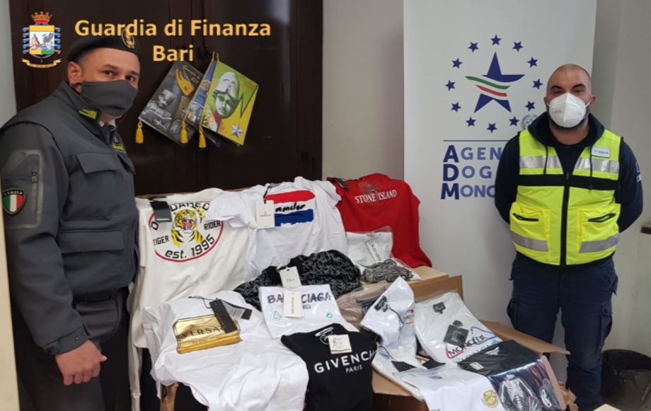 Le attività peritali richieste ed effettuate dalle aziende di riferimento hanno confermato la natura contraffatta dei marchi e dei modelli di circa 22.000 paia di calzature provenienti dalla Grecia, intercettate nel corso di due distinte operazioni e riproducenti modelli di note marche (Converse, Nike e Gucci); in un’altra attività di servizio, sono stati individuati circa 500 capi d’abbigliamento di cui è stata accertata la contraffazione di svariati celebri marchi (Versace, DSquared2, Stone Island, Balenciaga, Givenchy, Dior, Moncler, Off White, Kenzo, Gucci, Palm Angels, Fendi, Moschino, Dolce & Gabbana); questi ultimi, appena sbarcati da un traghetto commerciale proveniente dall’Albania e non dichiarati in dogana, erano occultati all’interno di un camion frigo e riportavano, oltre alle etichette tipiche della merce destinata alla vendita, in larga parte la dicitura “Made in Italy”, protetta dalla normativa nazionale e nell’occasione indebitamente utilizzata, derivandone un’ulteriore contestazione da parte delle Autorità.