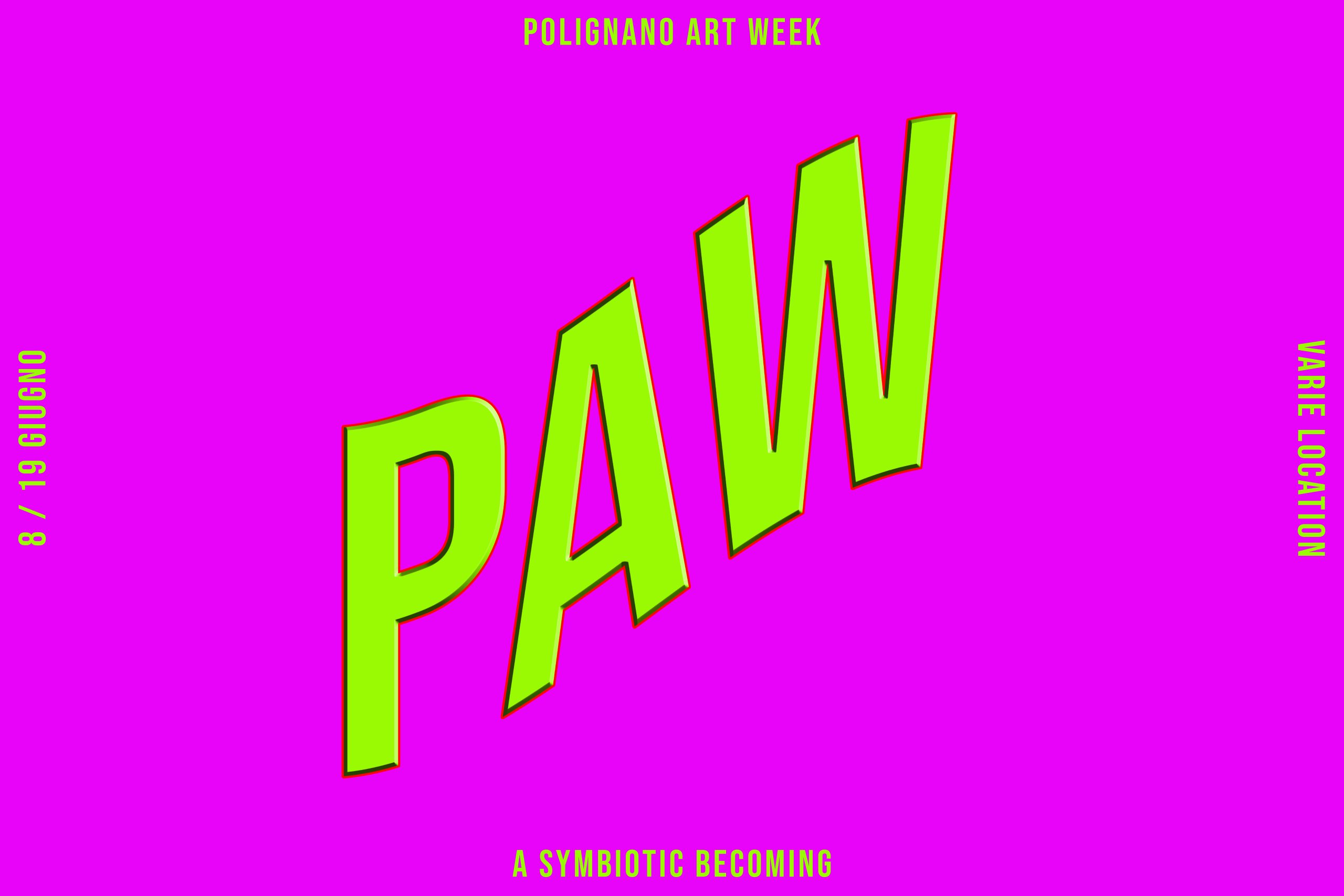 PAW, Polignano Art Week – A Symbiotic Becoming è un progetto co-curato da Like A Little Disaster e Fondazione Pino Pascali, con il patrocinio del Comune di Polignano a Mare e Regione Puglia. Collaborano attivamente a PAW anche ExChiesetta, ZicZic, FPS Arte & Cultura, Vento Blu, Bachi da Setola, Corpismossi + Archivio Chiara Fumai (Milano / Polignano a Mare, Bari) e Berlinskej Model (Praga, CZ).