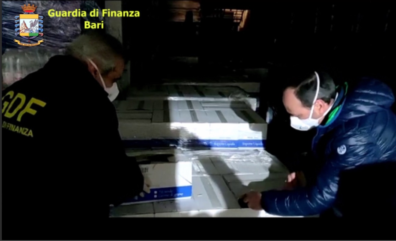 Tale intervento fa seguito alle attività di perquisizione svolte – su delega di questa Procura – lo scorso 9 marzo e 8 aprile sempre dalle Fiamme Gialle baresi in 23 Comuni delle province di Bari e BAT, che avevano permesso di sequestrare complessivamente oltre 38.000 prodotti (mascherine protettive, gel e salviette per le mani), per un valore di circa 250.000 euro, poste in commercio illecitamente.