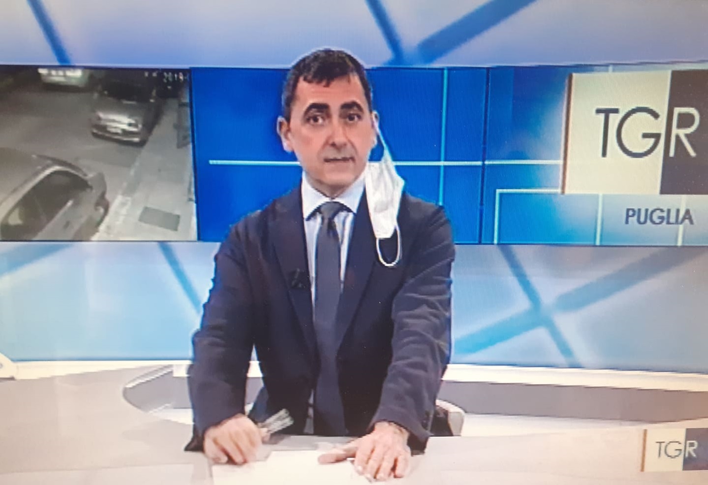 In video con la mascherina appesa all’orecchio. Non una scelta editoriale ma, sicuramente, una disattenzione di non poco conto. Impossibile da nascondere l’imbarazzo del giornalista Gaetano Prisciantelli che conduceva il Tg Rai 3 edizione Puglia andato in onda alle 14 per la grave svista. Dopo la lettura dei titoli del telegiornale è andato in video con una mascherina chirurgica che pendeva dall’orecchio sinistro. Scomparsa, per magia, si fa per dire, dopo la messa in onda dei servizi di apertura. Errori da Coronavirus.
