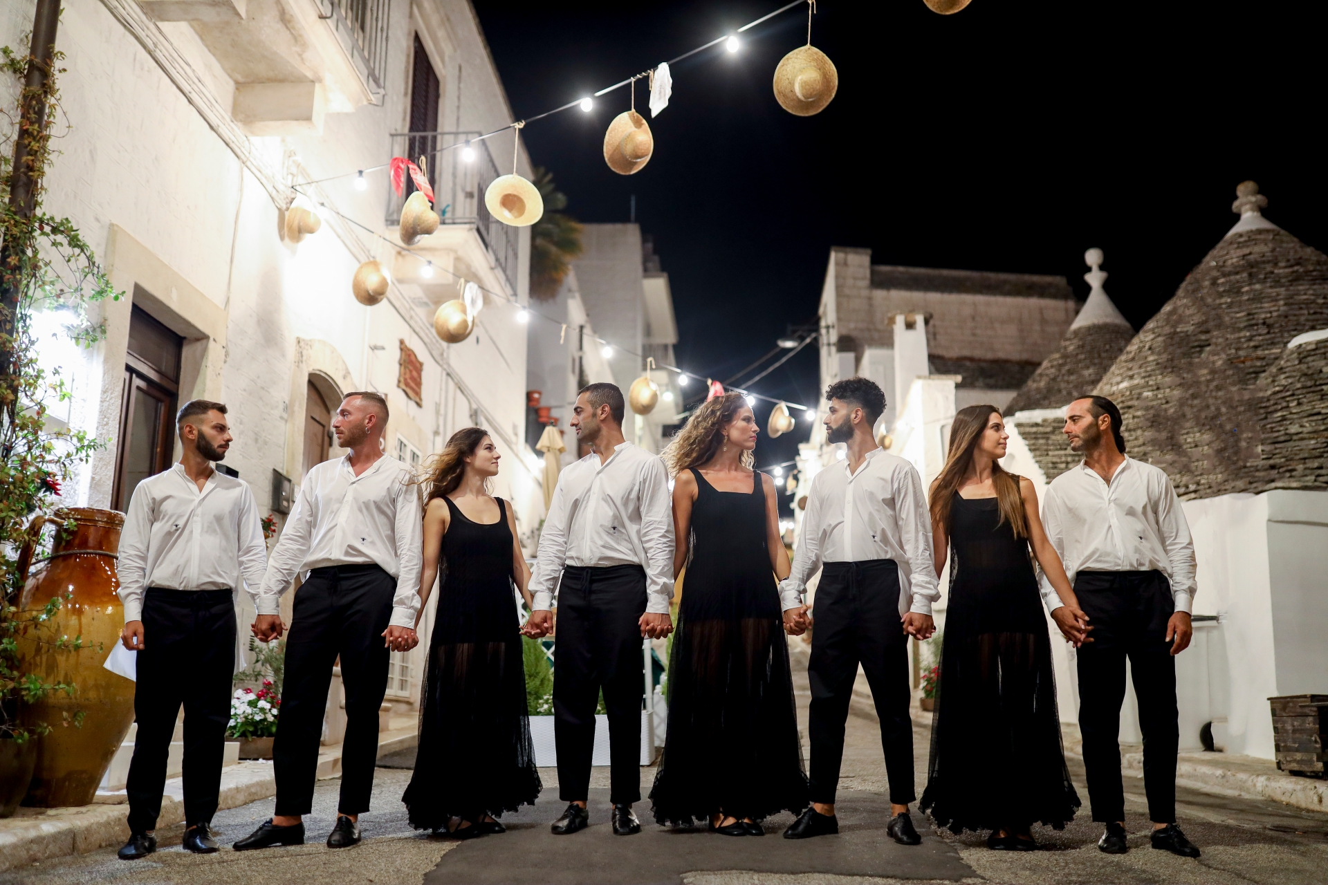 La danza libera e spontanea del Corpo di Ballo della Taranta pizzica la città dei trulli dal 1996 tutelati dall’Unesco come patrimonio dell’umanità. Il borgo della Valle d’Itria e della Murgia dei Trulli si svela nella sua silenziosa bellezza notturna tra le bianche costruzioni coniche e i vicoli illuminati. «Forse il capolavoro delle Puglie è proprio Alberobello, scrive Pierpaolo Pasolini. Non c’è manuale turistico che lo ignori. Un paese perfetto con la sua architettura “grottesca e squisita”.