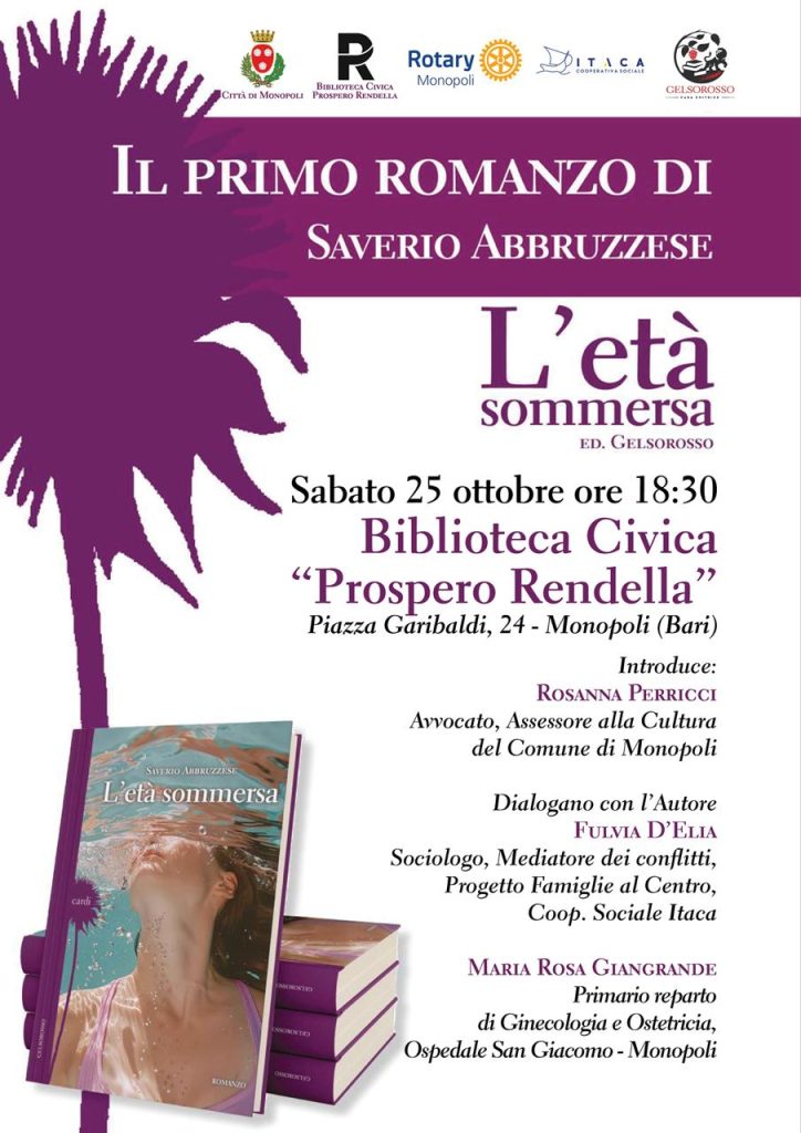 E’ questa la breve presentazione del romanzo del prof. Saverio Abruzzese, psicologo, che sarà ospite a Monopoli, presso la Biblioteca Prospero Rendella, alle ore 18.30