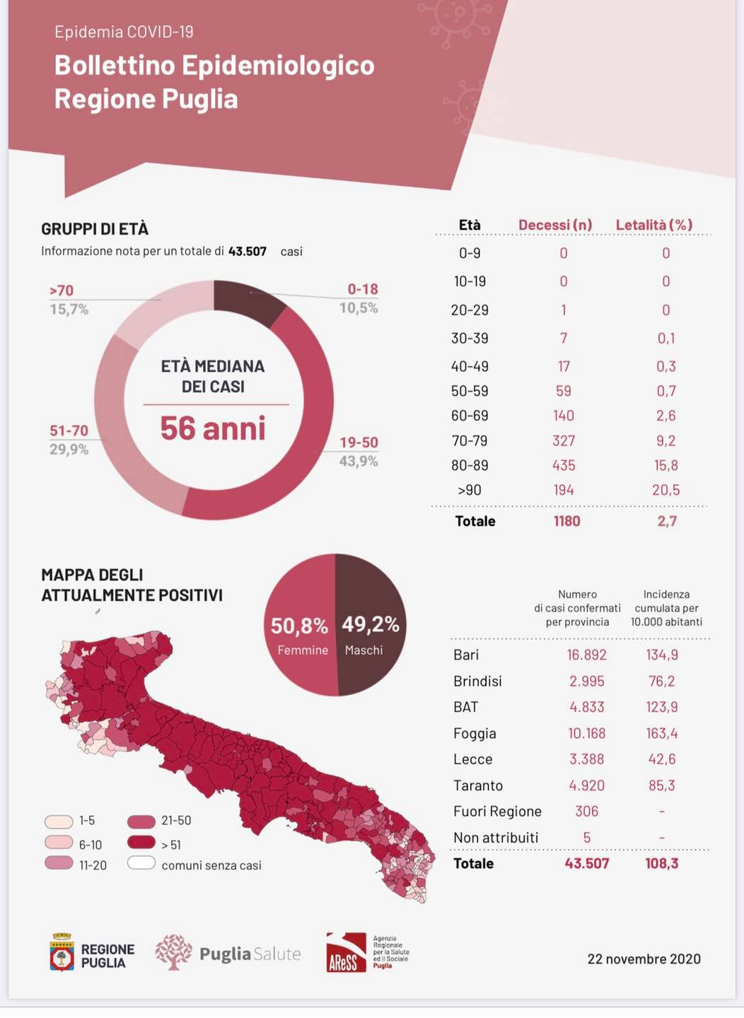 In percentuale il 57,7 % sono donne e il 42,3 % sono uomini e l’età media dei contagiati è di 55 anni.
