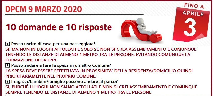 Il Comune di Monopoli sta diffondendo un utile “breviario” con tutte le attività consentite e non consentite dal Decreto del Presidente del Consiglio n. 62 del 9 marzo 2020 fino al prossimo 3 aprile 2020.