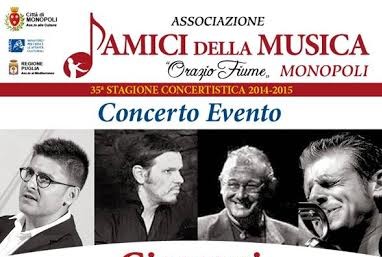 Giovedì 19 febbraio p.v. alle ore 21,00 nel Cinema Vittoria di Monopoli concerto-evento per gli “Amici della Musica-O.Fiume” dedicato al grande jazz. Si esibirà il Giovanni Scasciamacchia Trio.
