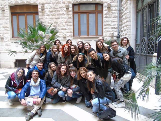 Un sabato tutto barese per gli alunni del Liceo Artistico – IISS “Luigi Russo” di Monopoli. Il 22 novembre gli studenti della V D dell’indirizzo “Architettura e Ambiente” hanno potuto visitare uno dei palazzi più belli e significativi dell’architettura del primo Novecento pugliese. Il Palazzo dell’Acquedotto è un luogo simbolo della Bari murattiana che nei primi decenni del Novecento venne caratterizzata da un’intensa attività di rinnovamento urbanistico. Un palazzo progettato intorno al simbolo dell’acqua, costruito utilizzando uno dei materiali tipici dell’architettura pugliese, la pietra di Trani, e rielaborando uno degli stili più rappresentativi della Puglia, il romanico. Grazie alla guida competente e coinvolgente del prof. Carmelo e dell’ing. Giuseppe Calò Carducci, gli studenti hanno avuto la possibilità di ripercorrere le vicende storico-artistiche del Palazzo e le tappe fondamentali che hanno permesso alla Puglia, perennemente afflitta dalla carenza d’acqua, di avere finalmente una fonte di approvvigionamento continua che si materializzava nella costituzione dell’Ente Autonomo Acquedotto Pugliese e nella realizzazione di un acquedotto che attingeva acqua dal fiume Sele. Per rendere visibile questa epocale svolta, l’ing. Cesare Brunetti progettò, in Via Cognetti, il palazzo che avrebbe accolto la sede ufficiale dell’Ente stesso. Ultimato nel 1932, esso sintetizzava e rielaborava il repertorio architettonico del romanico pugliese, del quale la stessa Bari offre esempi straordinari con la Cattedrale e la Basilica di S. Nicola. La valenza formativa della visita per gli studenti del corso di “Architettura e Ambiente” risiede nell’aver potuto visionare non solo l’imponente struttura, ma tutti i dettagli degli arredi, dei dipinti, delle decorazioni che ne fanno un esempio di “opera totale”. Questo percorso decorativo, tutto incentrato sul tema dell’acqua fu affidato all’eclettico artista Duilio Cambellotti. Nulla è lasciato al caso: dal più piccolo elemento, quale può essere un fermaporta o una maniglia, sino ai dipinti, alle tappezzerie e agli arredi dell’appartamento presidenziale. Curando ogni particolare, Cambellotti riuscì a fondere il tema principale dell’acqua con la celebrazione della Terra di Puglia, affiancando citazioni medievali e classiche, suggestioni Decò ed atmosfere metafisiche.