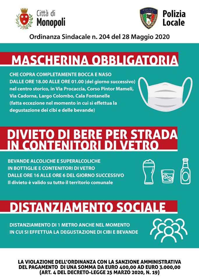 Non sono mancate le reazioni di molti esercenti e avventori nei confronti delle nuove norme sulla “movida” adottate dall’Amministrazione Comunale di Monopoli, a tal punto che lo stesso sindaco Angelo Annese è intervenuto questa mattina con un post su fb nel quale dichiara “Qualcuno mi ha detto ieri i contenuti dell’ordinanza sono assurdi e penalizzanti per le attività. Il mio fine è proprio quello opposto. Per supportare e fornire sostegno alle attività e per aiutare gli esercenti a gestire la clientela che spero sia sempre in aumento, abbiamo pensato di intervenire con delle regole che non lasciano dubbi per la loro chiarezza. E poi il rispetto di queste norme garantisce sicurezza e questo fa bene a tutti!” Nessun ripensamento, quindi, Annese ribadisce: “Da questa sera troverete nella nostra città questi manifesti.