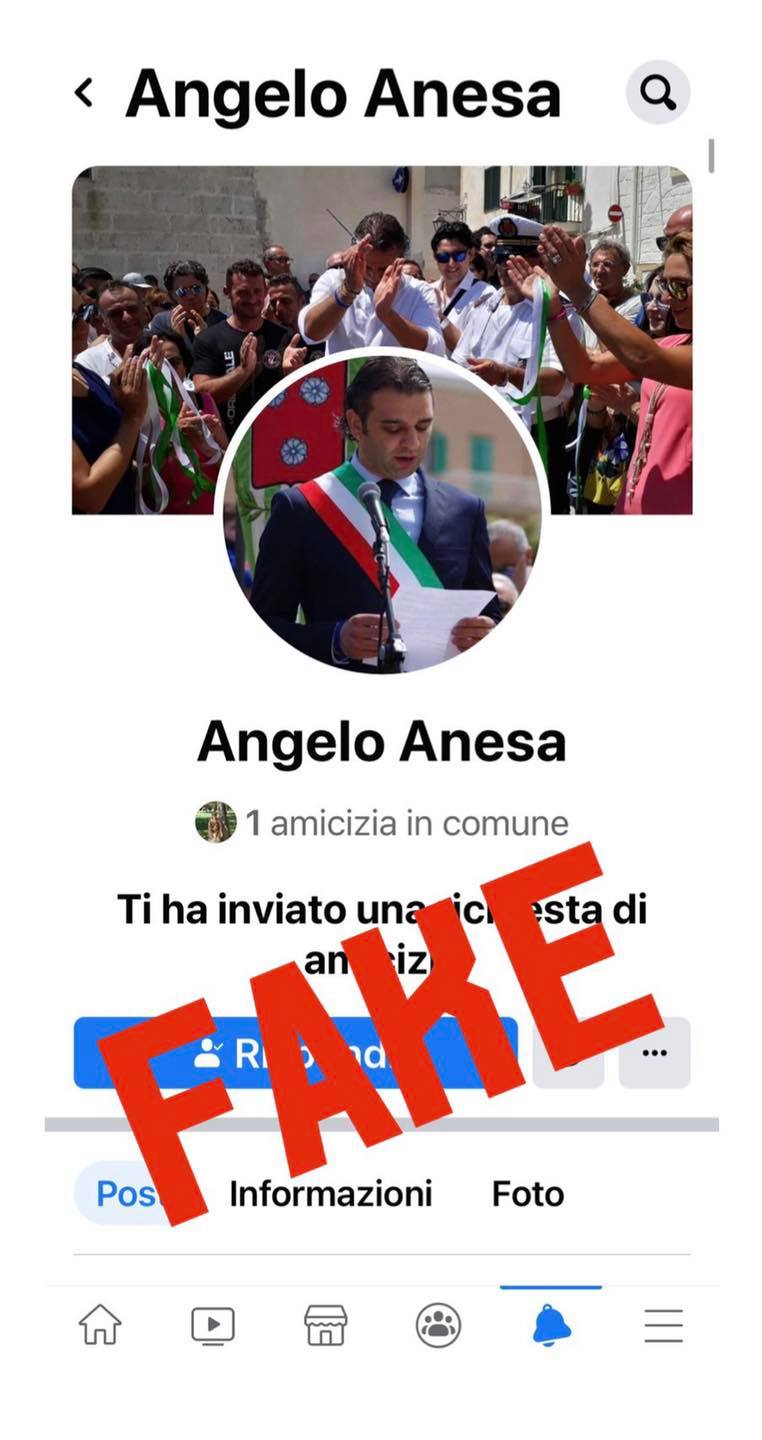 In rete si aggira un falso profilo del sindaco di Monopoli Angelo Annese. A segnalarlo lo stesso primo cittadino qualche minuto fa: “Buonasera a tutti – ha scritto Annese – ho urgenza di comunicarvi che hanno creato un profilo falso con i miei dati per effettuare una truffa a danno di chi accetta. Molto cittadini me lo stanno segnalano da circa un’ora pertanto vi prego di non inserire i vostri dati in eventuali messaggi o link che potreste ricevere. Vi posto qui le foto del profilo e del messaggio che potrebbero inviarvi. Ho già segnalato a Facebook e alle forze dell’ordine. Condividendo questo messaggio ma soprattutto segnalando questo profilo, possiamo evitare che alcuni cittadini possano essere truffati.