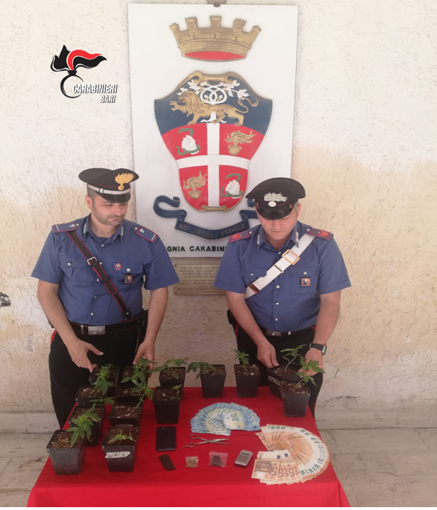 I Carabinieri della Stazione di Monopoli (BA), nel corso di un servizio di perlustrazione, hanno arrestato in flagranza di reato un pusher con l’accusa di coltivazione e detenzione ai fini di spaccio di sostanze stupefacenti.