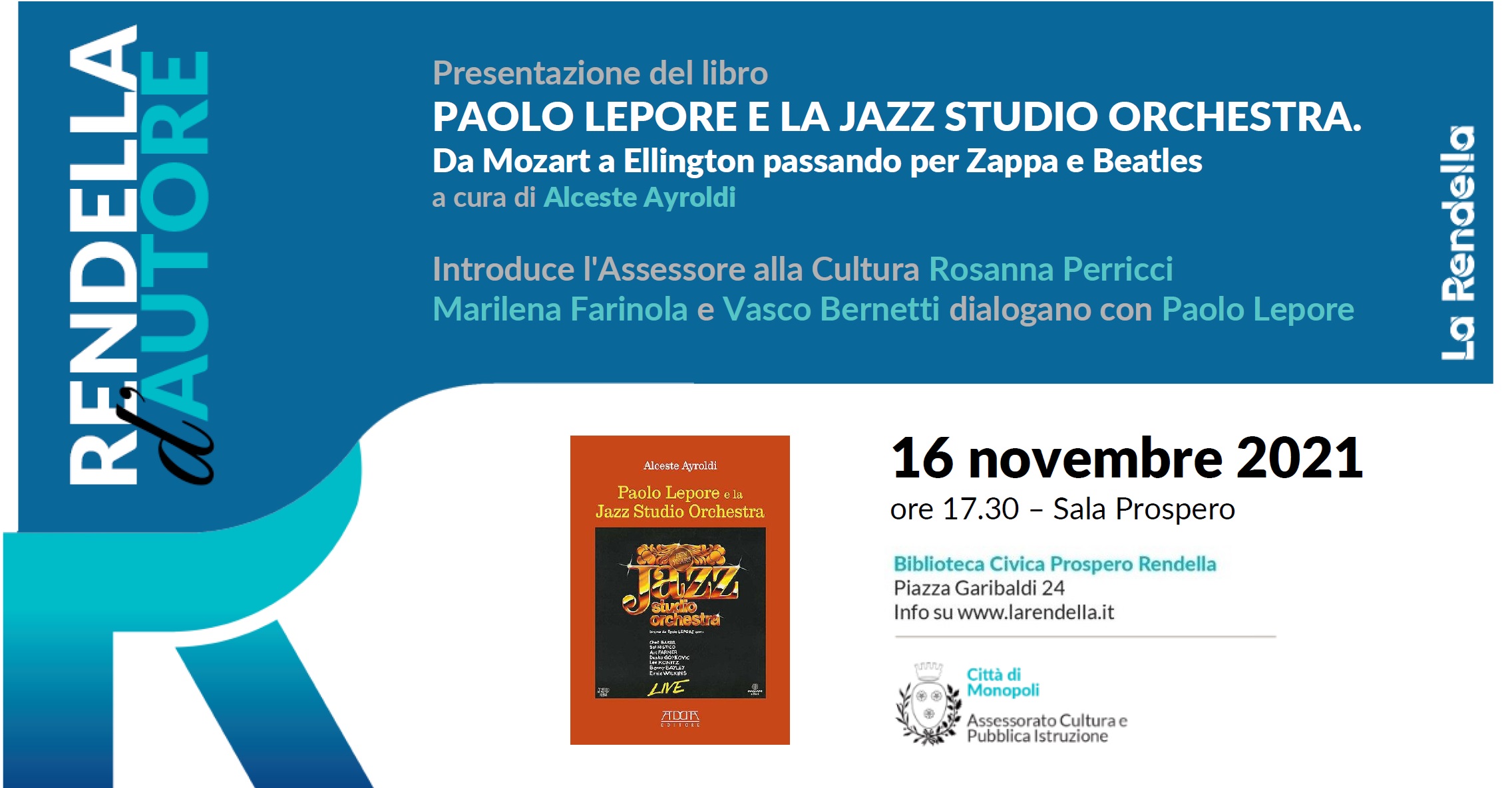Martedì 16 novembre alle ore 17.30 nella Sala Prospero della Biblioteca Rendella presentazione del libro dal titolo Paolo Lepore e la Jazz Studio Orchestra. Da Mozart a Ellington passando per Zappa e Beatles a cura di Alceste Ayroldi.