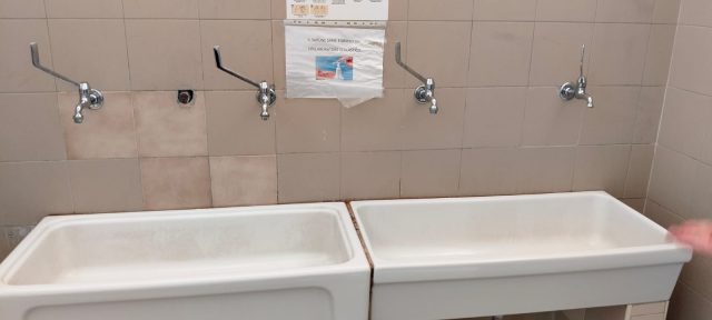 Nonostante l’usura naturale, tutti i sanitari, le ante e le serrature delle porte risultano integri e pienamente utilizzabili, mentre rivestimenti ceramici e pavimenti si presentano in buono stato generale. Sono emerse solo alcune piccole criticità funzionali, come lievi malfunzionamenti di alcuni scarichi e rubinetti dovuti all’usura, senza tuttavia compromettere l’utilizzo dei lavandini, ognuno dei quali resta perfettamente funzionante. Sono inoltre presenti minime imperfezioni agli infissi e qualche graffito, fenomeni tipici in ambienti scolastici ad alta frequentazione.