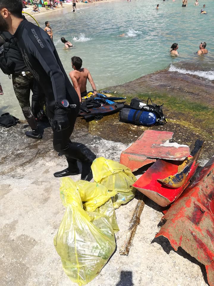 I sub dell’associazione ‘la scuola del mare” di Monopoli per volontariato in spiaggia, recuperato nel mare i segni della nostra incivilta’. (La foto è della sig.ra RIta Sarnelli)
