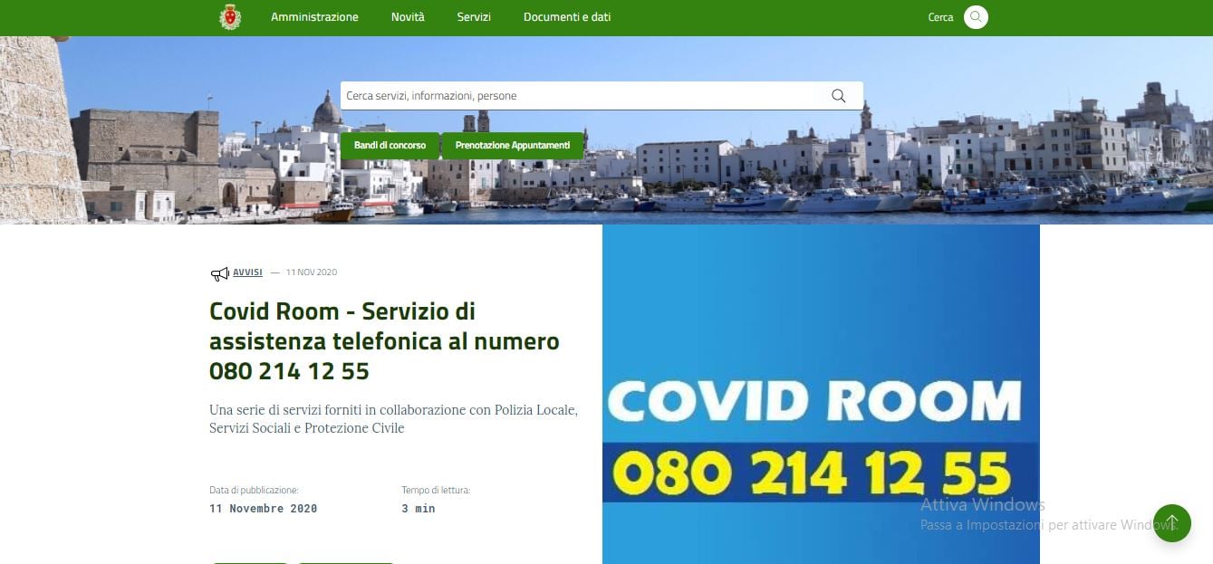 Sul sito web del Comune di Monopoli fa bella mostra di sé una nuova sezione dedicata al Coronavirus.