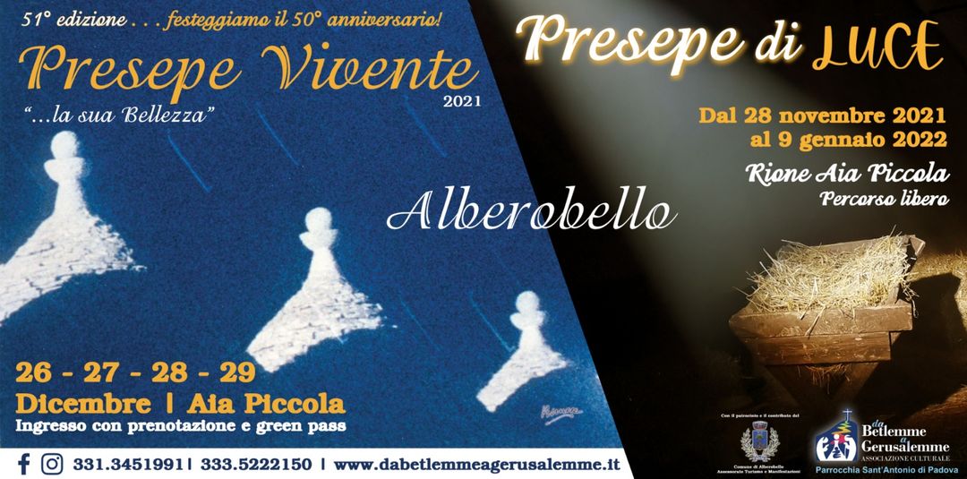 Presepe di Luce e Presepe Vivente hanno il patrocinio del Comune di Alberobello.