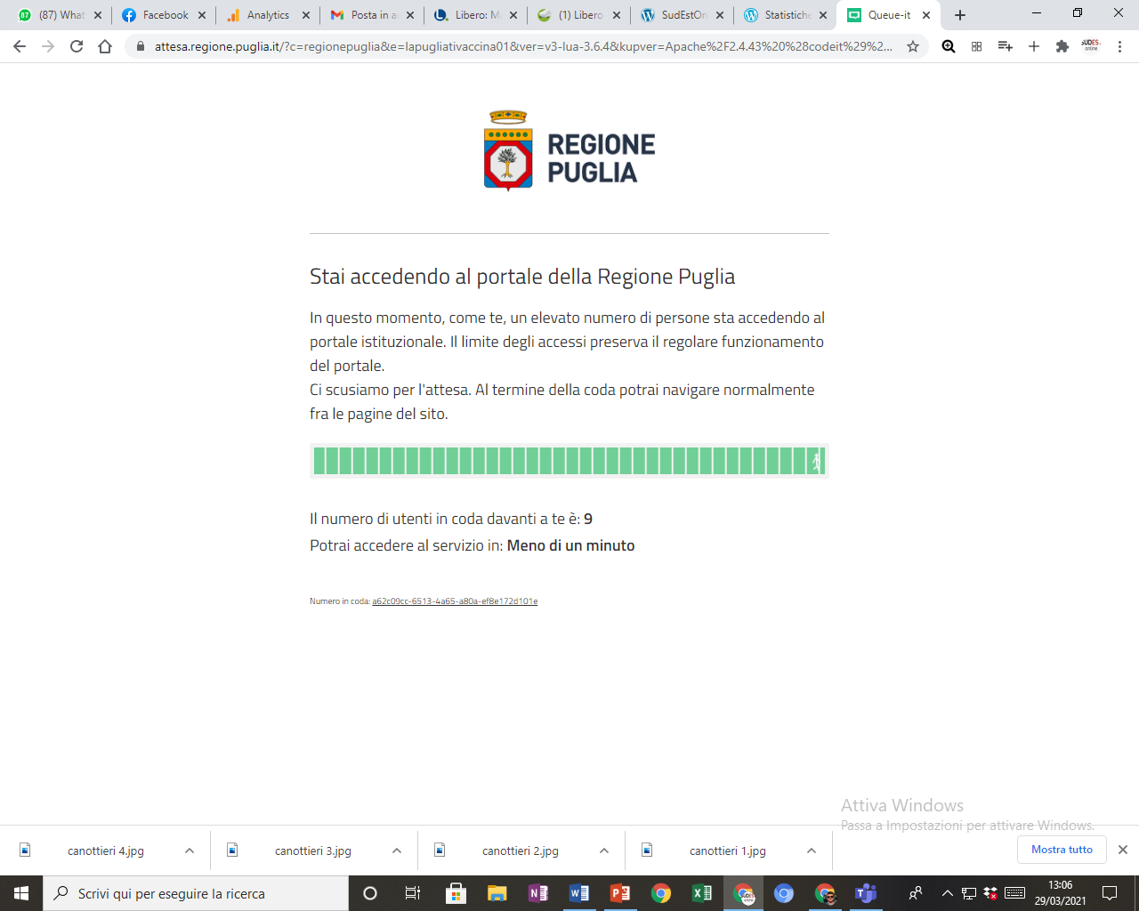 La speranza è nel vaccino e tanti pugliesi non vedono l’ora di vaccinarsi nella speranza di mettere la parola fine all’incubo covid. A dimostrarlo è il vero e proprio “assalto alla diligenza” scatenatosi sia con il numero verde messo a disposizione della Regione Puglia per le prenotazioni, sia gli accessi al sito che ha fatto registrare tempi di attesa da pochi minuti a anche oltre mezz’ora. Pur nella perfezionabilità del tutto, comunque, va dato atto che nella nostra Regione si stanno ponendo in essere tutte le strategie possibili per dare la possibilità di accedere alla vaccinazione e di certo, in confronto ad altre regione d’Italia ritenute da sempre più “emancipate”, la nostra regione si sta dimostrando efficiente in materia di vaccinazioni. Speriamo che non soltanto si prosegua in tal senso, ma che si possano ottimizzare sempre di più le operazioni mettendo un numero sempre maggiore di individui al riparo dalla pandemia.