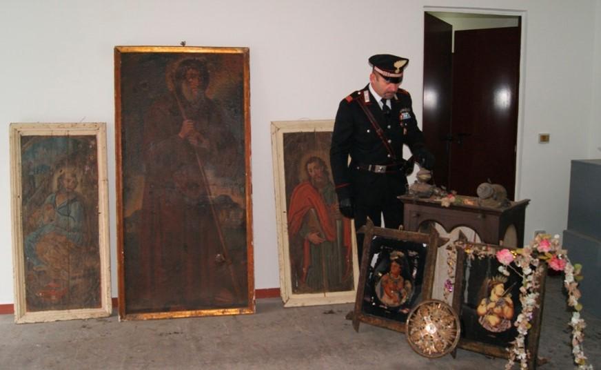 Ritrovati dai Carabinieri tre tele e oggetti sacri rubati
