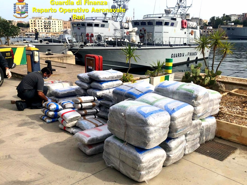 In particolare, a seguito di segnalazione di un aereo impiegato dalla Marina Militare in attività di pattugliamento del mare adriatico, un’unità navale del Reparto Operativo Aeronavale di Bari – Sezione Operativa Navale di Brindisi, impiegata in compiti di Polizia del Mare, ha localizzato e, dopo un breve inseguimento, fermato un’imbarcazione a poche miglia dalla costa. La tipologia del mezzo e l’insolita posizione, da subito hanno insospettito i finanzieri che saliti a bordo hanno rinvenuto, occultati in un sottofondo, numerosi involucri cellophanati di varie dimensioni per un totale di 546 kg. di marijuana e 17 kg di hashish che al mercato clandestino avrebbero fruttato oltre 5 milioni di euro.