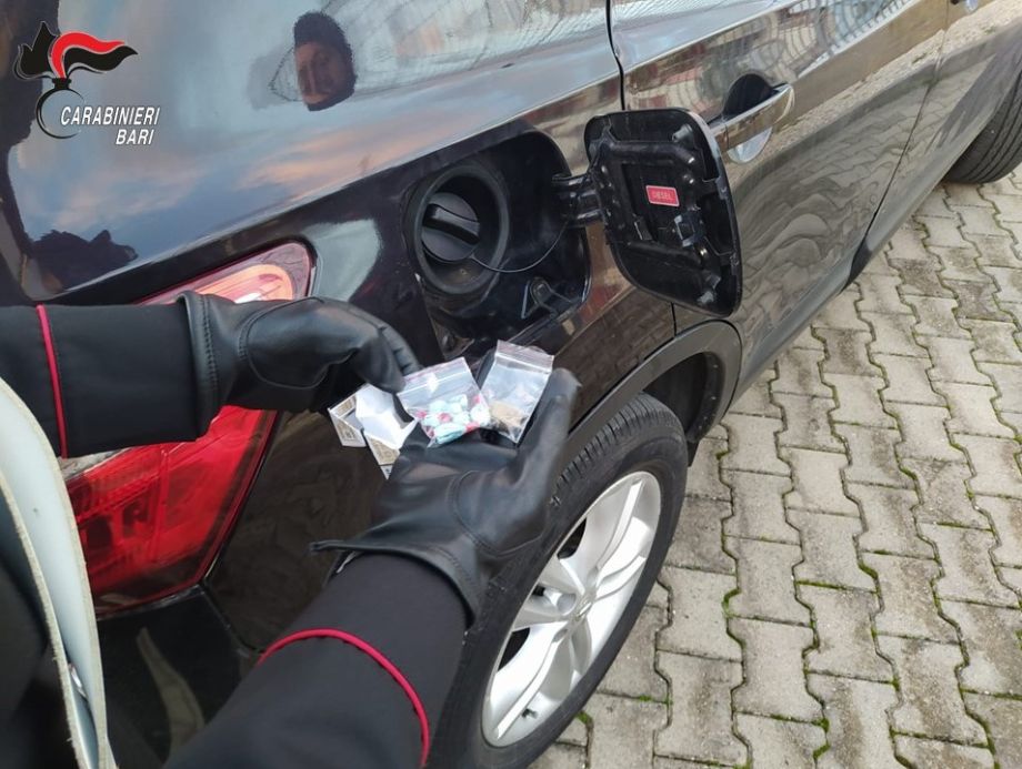 A Bitritto, i militari della locale Stazione Carabinieri hanno assicurato alla giustizia B.V., un 35enne del luogo, pluripregiudicato. Dopo giorni di osservazione da parte dei Carabinieri, è stato sottoposto a specifico controllo e a perquisizione, al seguito della quale, sono stati rinvenuti in casa ben 12 involucri contenenti 70 grammi di sostanza stupefacente del tipo hashish, un bilancino di precisione e materiale idoneo al confezionamento. Ma i movimenti dell’uomo, studiati dai militari, lasciavano presumere che non tutto fosse all’interno della sua abitazione. L’intuito dei militari veniva poi confermato da “Fighter”, il cane antidroga del Nucleo Cinofili Carabinieri di Modugno che, nel corso delle attività ha consentito di rinvenire, occultato all’interno dello sportellino del serbatoio del carburante dell’autovettura a lui in uso, un pacchetto di sigarette contenente 8 involucri del peso complessivo di 5 grammi di cocaina e 2 grammi di hashish. L’uomo, che era stato già arrestato per lo stesso motivo meno di un anno, è stato nuovamente tratto in arresto.
