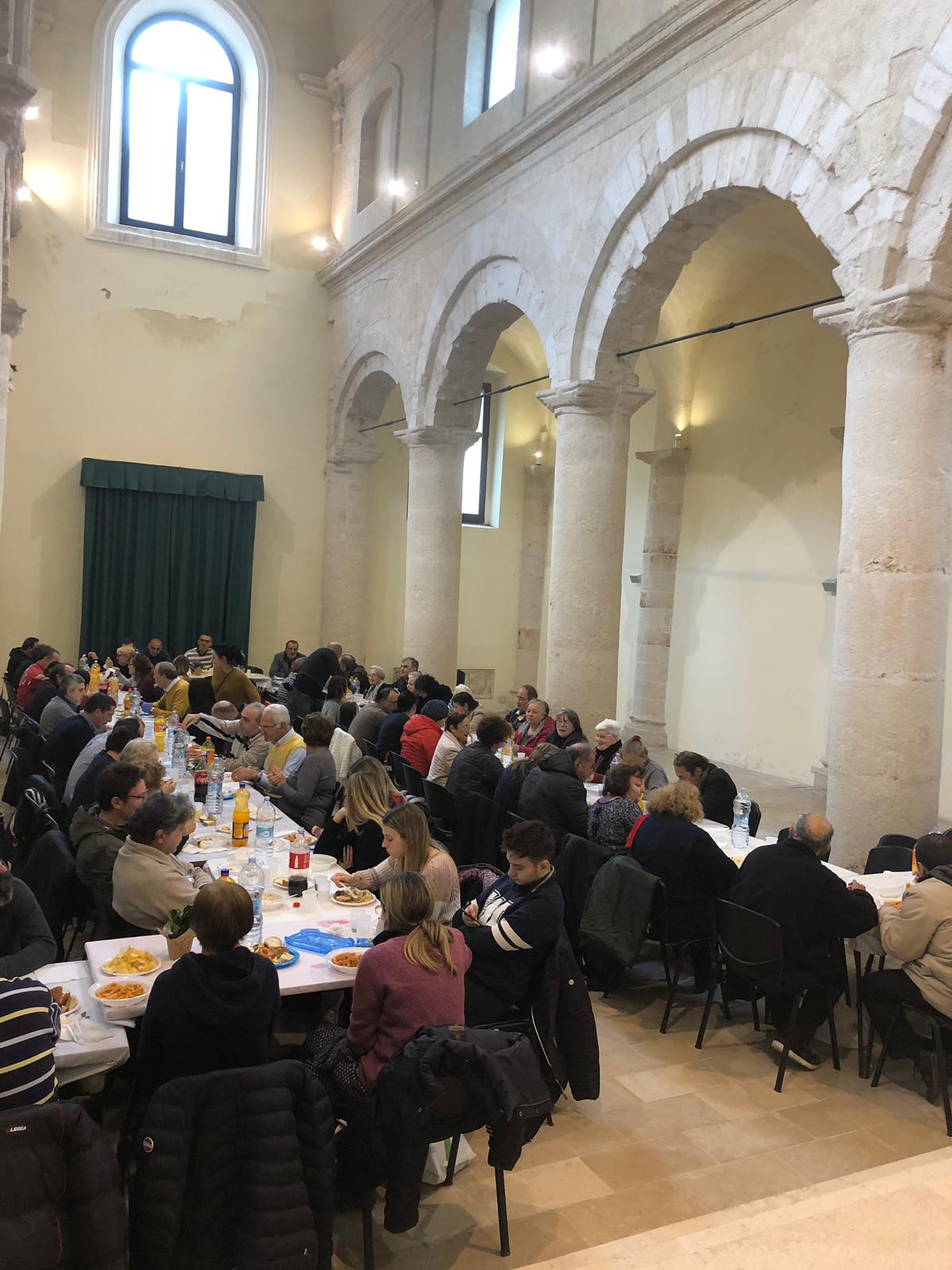 Domenica 18 novembre in occasione della II giornata mondiale per i poveri voluta da Papa Francesco, dal titolo del salmo 34 nei versi 7-8 “Questo povero grida e il Signore lo ascolta e lo libera da tutte le sue angosce”, il Santo Padre ci ha invitati a condividere non solo spiritualmente ma anche con gesti concreti di vita quotidiana la nostra vicinanza ai poveri. In particolare, il Papa ha chiesto alle comunità cristiane e ai laici di organizzare un pranzo di condivisione non per dare semplicemente qualcosa a loro ma per condividere il cibo cucinato da ogni persona che si è sentito di farlo, insieme a loro. Per questo le comunità dell’Unità pastorale di Monopoli, come ha fatto la Caritas diocesana con una mensa con la partecipazione di 300 persone a Conversano, anche a Monopoli nella chiesa di san Pietro hanno organizzato la stessa iniziativa pranzando con un centinaio di poveri della nostra città. L’iniziativa coordinata dal parroco dell’Unità pastorale don Peppino Cito e dai vice parroci don Carlo Semeraro e don Gianni Grazioso, ha visto la partecipazione di 20 operatori pastorali delle nostre parrocchie che hanno servito e mangiato nella gioia della condivisione il pranzo con i poveri. Certo, ci si aspettava una risposta più ricca e coraggiosa dalle famiglie e dalle persone del nostro territorio. Bisogna che tutti cresciamo nell’umanità, nella partecipazione e nel servizio attivo verso chi è ai margini della società. È necessario che da queste iniziative tutti impariamo di più e meglio a “sporcarci le mani” come ha fatto il Signore per tutti quelli che si accostavano a Lui. Però possiamo dirlo: buona la prima, vissuta in un bel clima di comunione tra tutti. E speriamo se il Signore vorrà che sia solo l’inizio. Un ringraziamento al nostro Rettore parroco, ai vice parroci e a tutti gli operatori che si sono prodigati nel pranzo di domenica come nel silenzio lo fanno ogni giorno entrando nelle case a contatto con i più bisognosi della nostra città. Donare e ricevere è infatti il vero senso di questa rete sociale del Signore che vive ogni giorno sul nostro territorio e che si spera possa crescere ancora. Grazie a tutti i volontari e gli operatori. Dio li benedica tutti e li faccia crescere sempre nella carità.